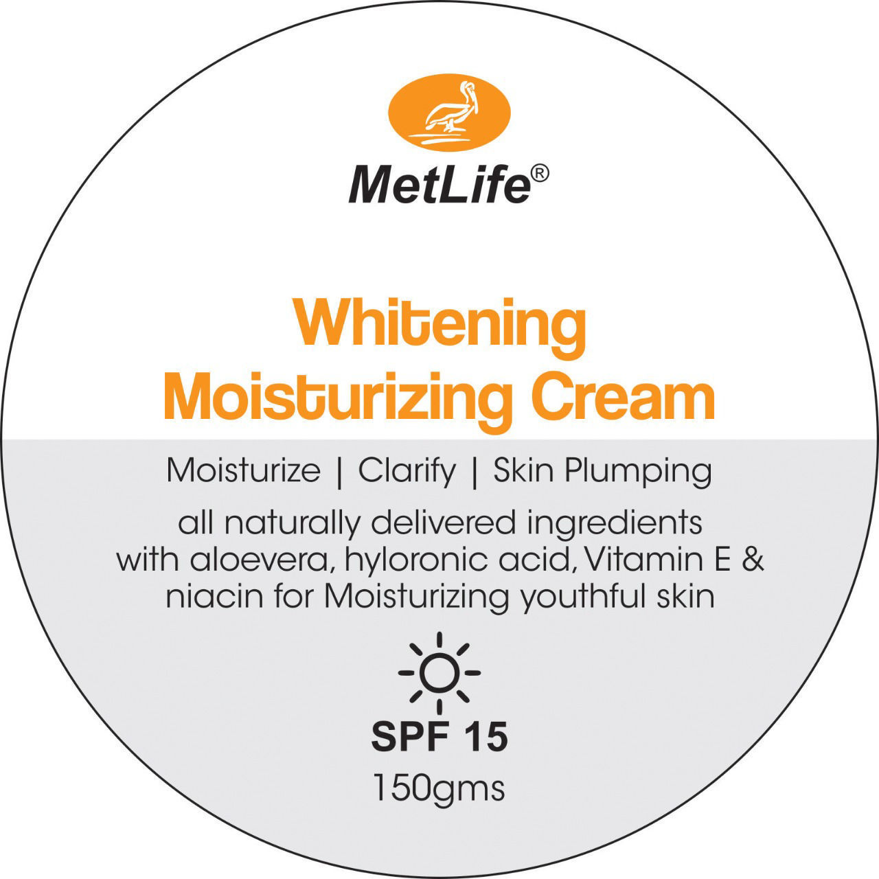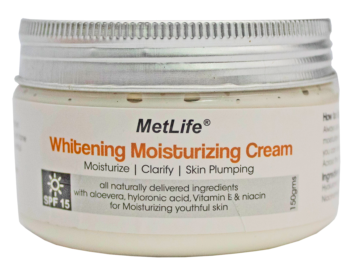 all naturally delivered ingredients with Aloe vera , hyaluronic acid, Vitamin e, & Niacin for moisturizing youthful skin with Spf 15. MetLife whitening moisturizing cream is precision-designed to revitalize aging skin. It consists of key nutrients needed to restore the skin to its beautiful, youthful appearance. It helps to replenish skin with long-lasting and plumping moisture while diminishing dullness, enlarged pores, and uneven skin tone. This gel is more than just a rehydrating formula; it is a potent blend of key anti-aging nutrients with a reputation for turning back the clock.